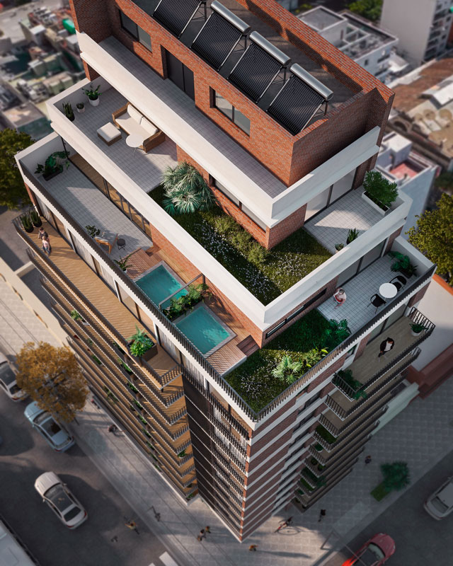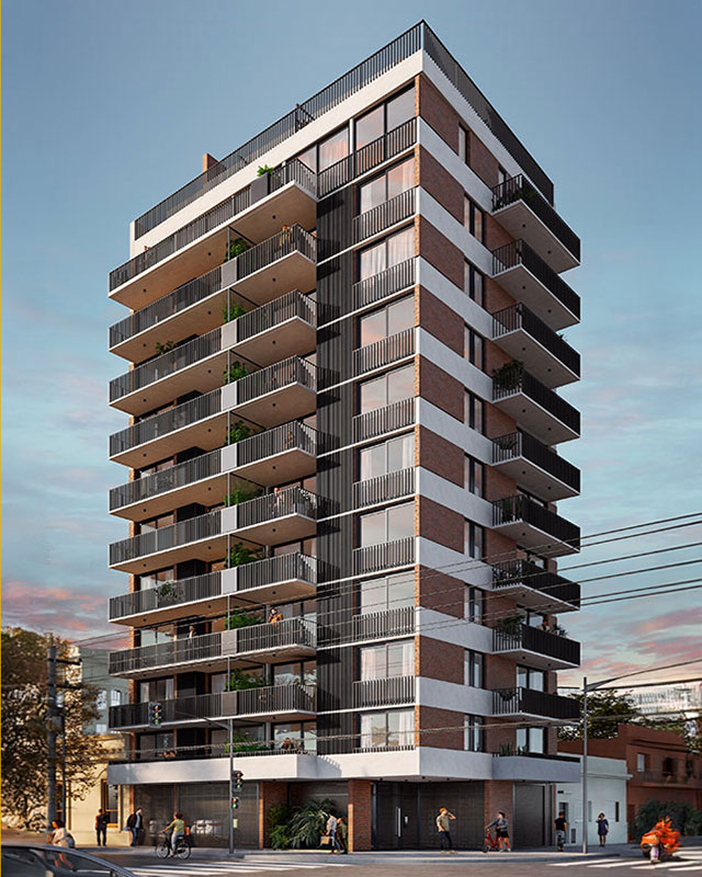 Un compromiso con la estética y la eficiencia energética reflejado en la elegancia de la fachada de ladrillo visto y mampostería. Te invita en cada unidad a disfrutar de momentos al aire libre con amplios balcones, iluminado por la luz natural, gracias a su orientación estratégica, y diseñado para maximizar cada metro cuadrado, creando ambientes que son funcionales y acogedores.