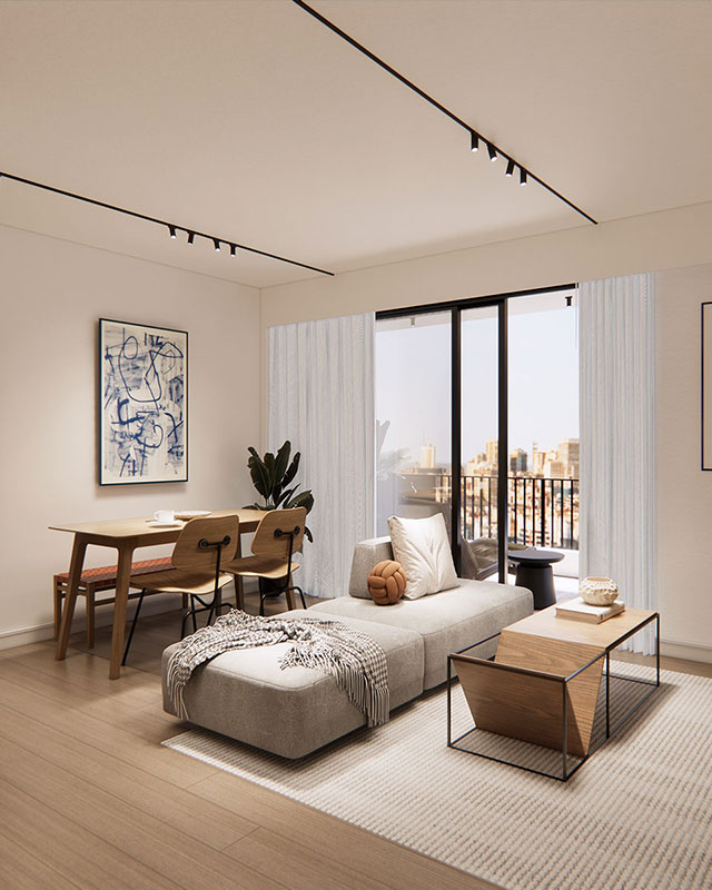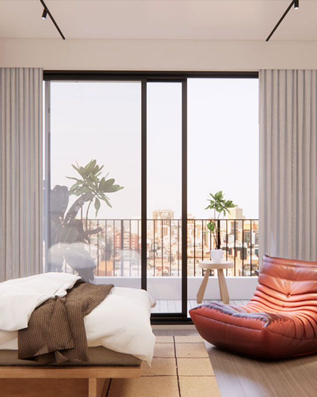 Un desarrollo de 12 pisos que busca crear espacios arquitectónicos atractivos, respetuosos con el entorno, y con eficiencia energética en sus 25 departamentos que destacan por su distribución inteligente y su orientación Norte y Oeste, garantizando ambientes luminosos y acogedores.